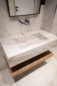 يجسد فخامة تصميم الرخام الطبيعي بلمسة عصرية. بتصميمه المستطيل الانسيابي ولونه الأبيض المتشابك مع عروق ذهبية دقيقة، يمنح حمامك إحساسًا […]
